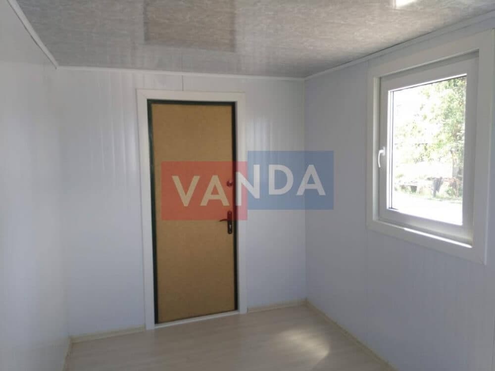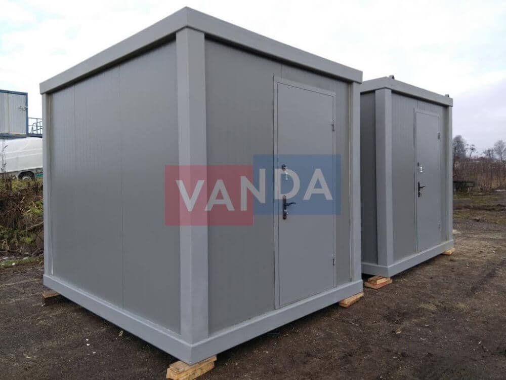 Контейнер состоит из металлического сварного основания. Стены изготовлены из сэндвич-панелей с прокладкой утеплителя. Крыша покрыта крашенным холоднокатаным металлом 1,2 мм. Помещение обустроено пароизоляцией при помощи технической пленки, которая проложена на полу и потолке. Внутренняя облицовка потолка выполнена из ПВХ-панелей, пол – из шпунтованной доски. Вход в помещение оборудован запирающейся металлической дверью.